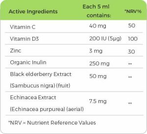 Emulive® contains Vitamin C, Zinc, Echinacea, vitamin D3 and Elderberry Extract which contribute to support immune system for children and youths and protect body against inflammatory agents.
