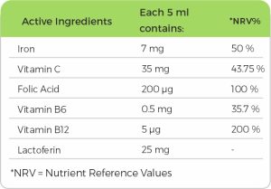 Hemafer® Contains Vitamin B12 contributes to formation of normal Red Blood Cells.